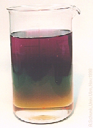 Lösung (2) eingießen, diese sinkt nach unten, wobei sich die violette