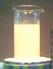 wird nach einigen Sekunden orangegelb und trüb, nach ca. 1 Minute